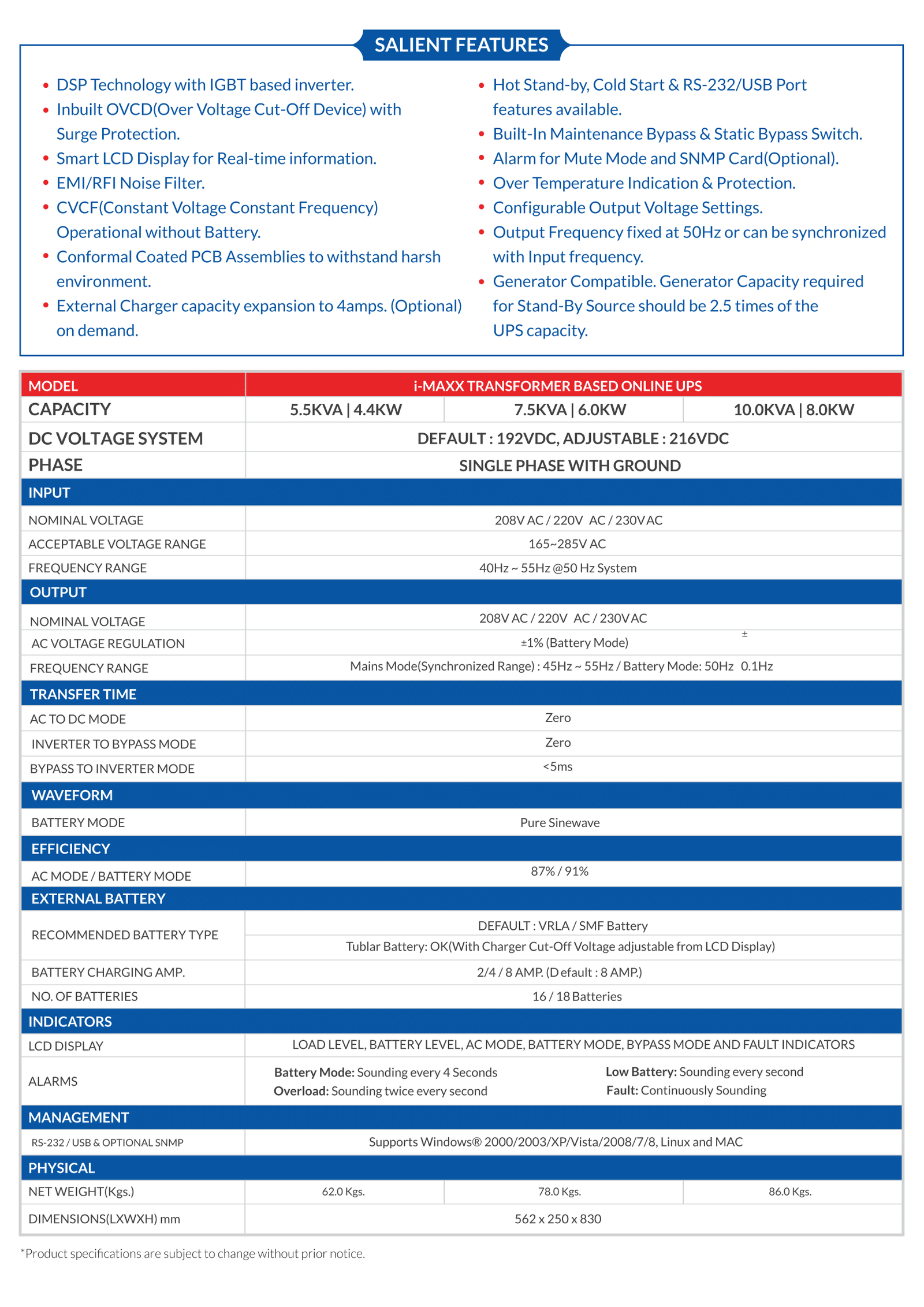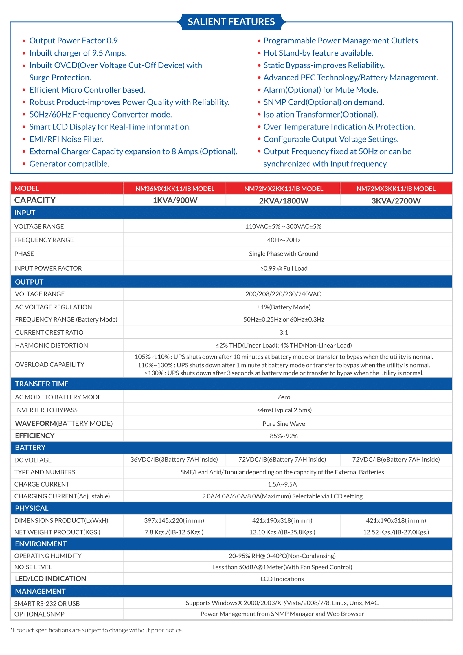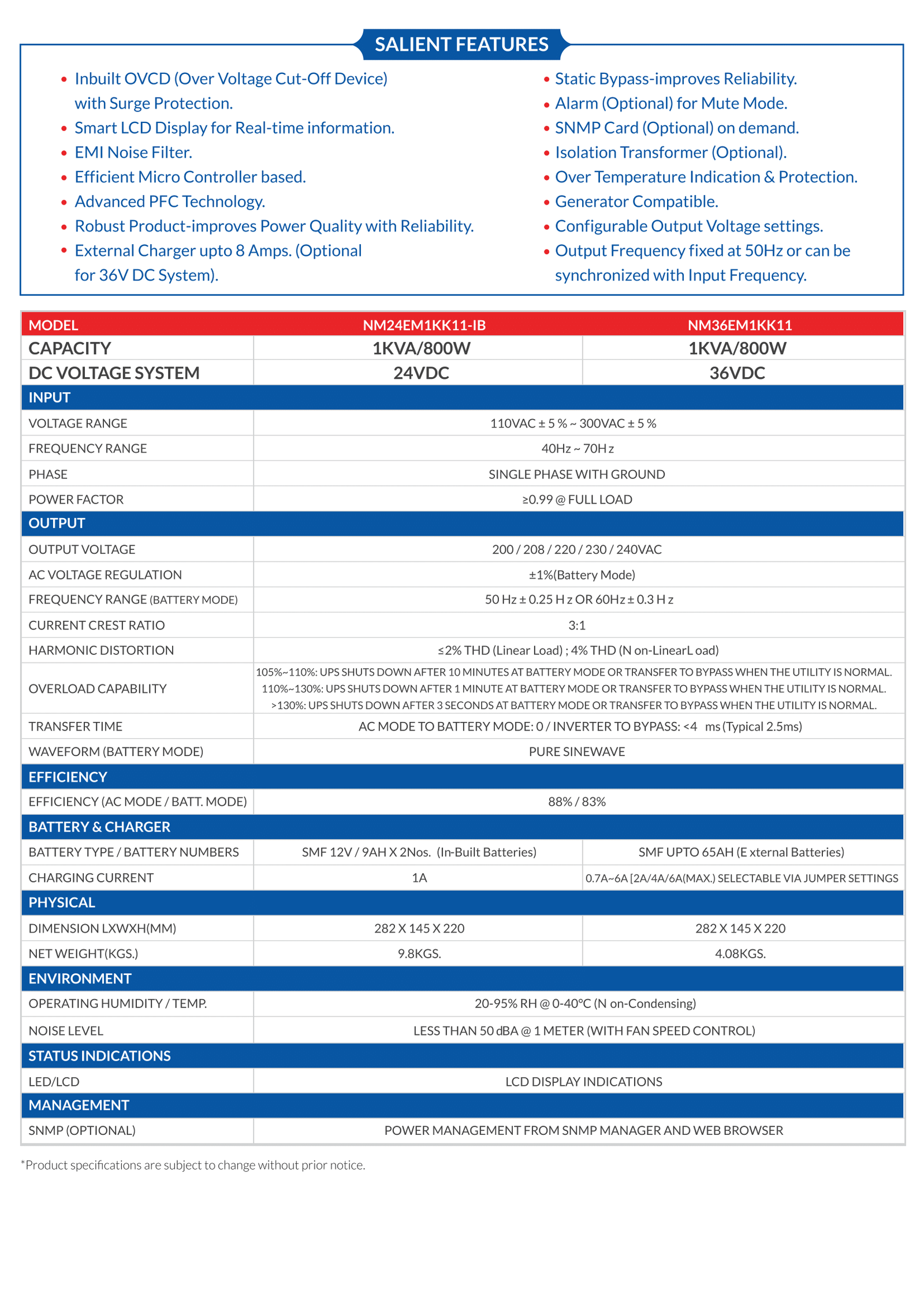 | Capacity | 1 KVA |